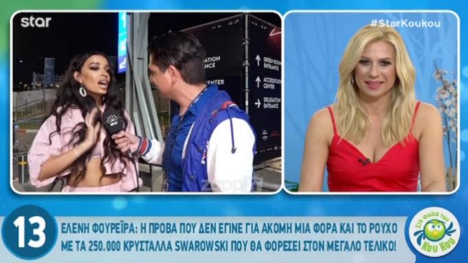 Η Ελένη Φουρέιρα μίλησε για το θέμα Στη φωλιά των Κου Κου και τον Γιάννη Πουλόπουλο: “Πάλι δεν κάναμε πρόβα. Δεν ξέρω, είναι λίγο περίεργα. Κάτι γινόταν με τις πρόβες του Β΄Ημιτελικού, καθυστέρησαν λίγο, οπότε κάναμε λίγο πρόβα στη σκηνή χωρίς κάμερες”.