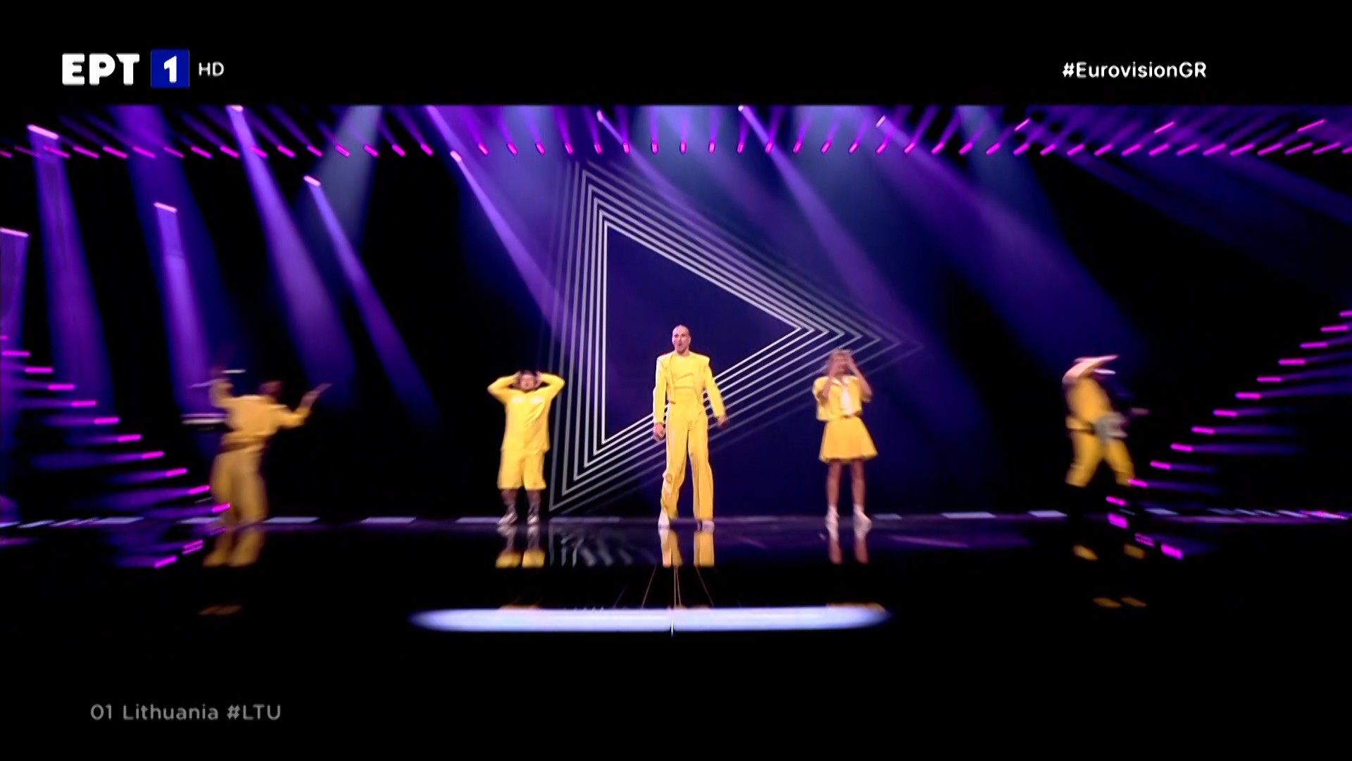 22:09 Ο διαγωνισμό ξεκινά με την Λιθουανία. Οι The Roop είναι γεμάτοι ενέργεια την οποία τη μεταδίδουν στο κοινό μέσα από το «Discoteque»