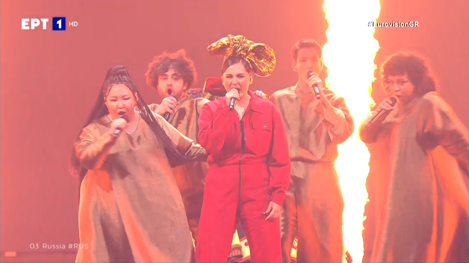 22:17 Η Manizha από την Ρωσία κάνει εμφάνιση μέσα σε ειδικά διαμορφωμένη κατασκευή με ιδιαίτερο φόρεμα. Με το “Russian Woman”, με πολύ φολκλόρ και φλόγες, αλλά κυρίως με το ισχυρό μήνυμα, σίγουρα δεν περνά απαρατήρητη.