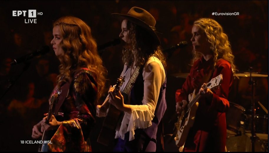 23:36 Από την Ισλανδία έρχονται τρεις ερμηνεύτριες, οι Systur με το Með Hækkandi Sól μεταδίδουν το μήνυμα του τραγουδιού με μια πολύ απλή και γλυκιά ερμηνεία.