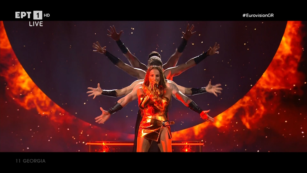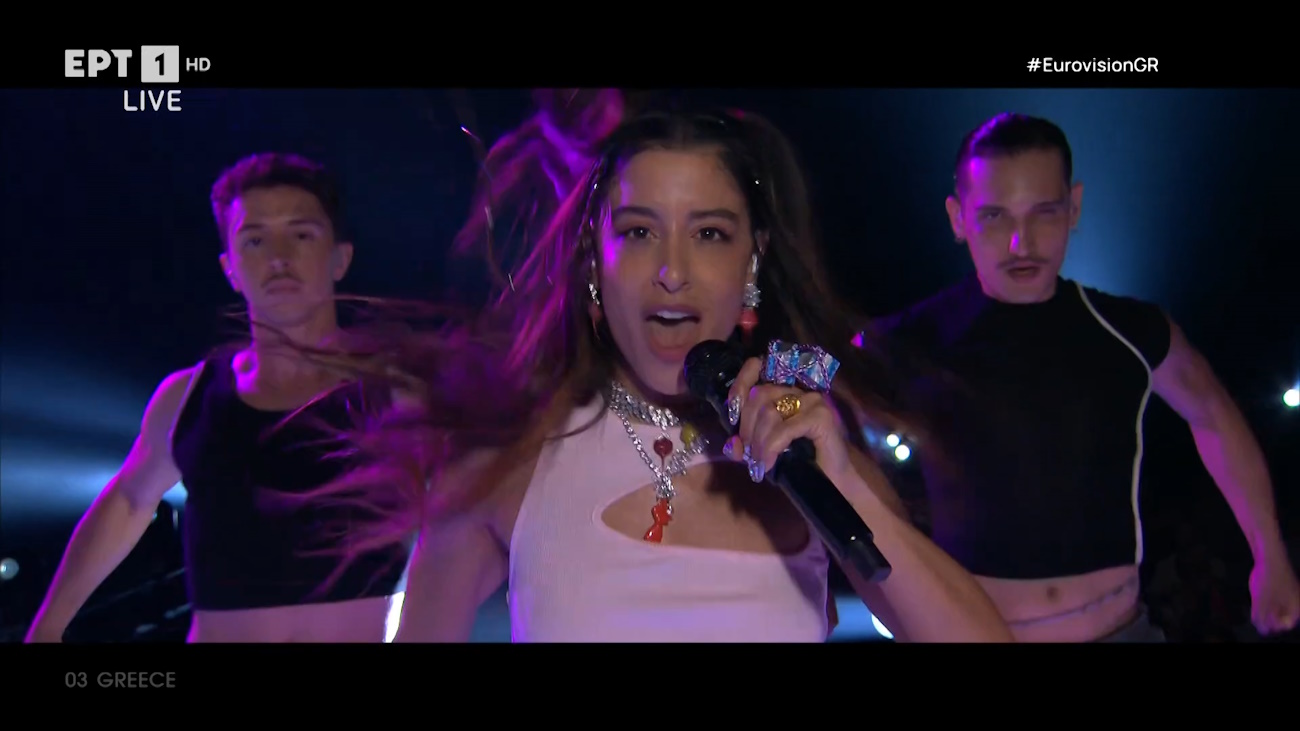 22.14: Η σειρά της Ελλάδας έφτασε. Η Μαρίνα Σάττι με το “Ζάρι” έχει κλέψει από την αρχή τις εντυπώσεις και αυτό αποτυπώθηκε και επάνω στη σκηνή. Το μονόπλανο δίνει πολλή ζωντάνια στην εμφάνιση και η τραγουδίστρια με τους χορευτές κάνουν πολλές διαφορετικές κινήσεις με καθεμιά να μοιάζει σαν διαφορετικό concept. Πολύ δυναμική εμφάνιση με την Ελλάδα να βλέπει ήδη τον τελικό.