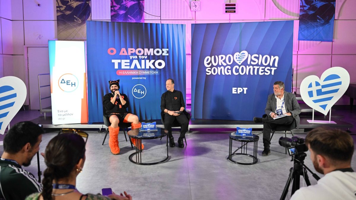 Οι πρωταγωνιστές της ελληνικής συμμετοχής Akylas και ο creative director Φωκάς Ευαγγελινός ήταν σήμερα Τρίτη 21 Απριλίου 2026 στο ραδιομέγαρο στο πλαίιο της καθιερωμένης press day που διοργάνωσε η ΕΡΤ. Μίλησαν σε δημοσιογράφους από το σύνολο των ΜΜΕ, για την παρουσίαση του «Ferto» στη σκηνή του Wiener Stadthalle, στη Βιέννη.