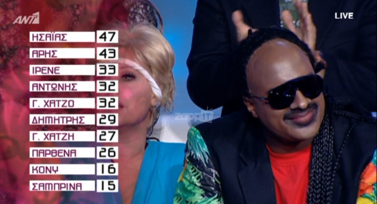 Το κοινό όμως έδωσε 6 βαθμούς στον Ησαΐα Ματιάμπα και 7 στον Άρη Μακρή που βρίσκονταν στις δύο πρώτες θέσεις και πλέον είχαν 18 βαθμούς. Τόσους συγκέντρωσε και ο Γιάννης Χατζηγεωργίου. Αλλά και ο Αντώνης Δόμινος εκτοξεύεται στην πρώτη θέση με το 12άρι του κοινού.