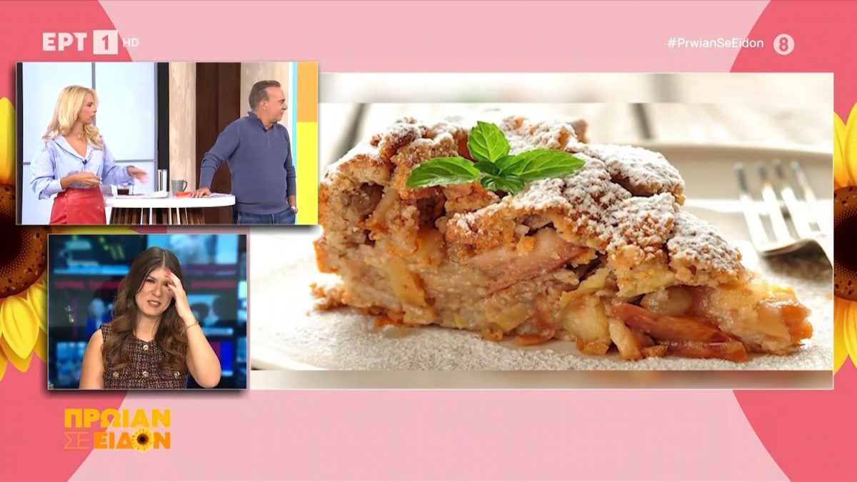 Μία αμήχανη στιγμή είχαν ο Φώτης Σεργουλόπουλος και οι συνεργάτιδές του στον αέρα του “Πρωίαν σε είδον”. Ο παρουσιαστής της ΕΡΤ, συζητώντας για τα καλύτερα γλυκά του κόσμου, σύμφωνα με το Taste Atlas, τόνισε πως προτίθεται να φέρει ανάποδη μηλόπιτα στη δημοσιογράφο, Μαριάννα Μανωλοπούλου.