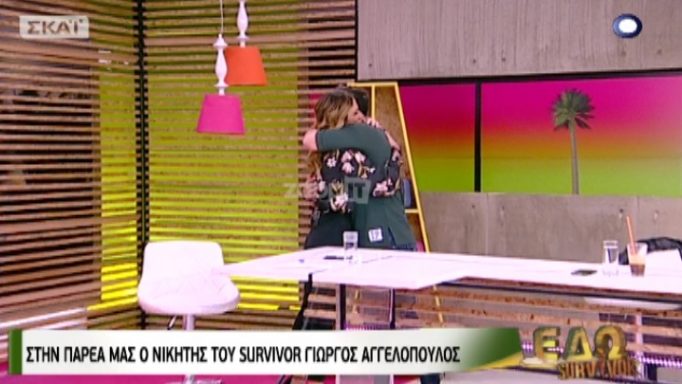Η Ντορέττα Παπαδημητρίου υποδέχτηκε στο ΕΔΩ Survivor τον πρώτο της καλεσμένο που δεν ήταν άλλος από τον νικητή του πρώτου κύκλου του ριάλιτι στον ΣΚΑΙ, Γιώργο Αγγελόπουλο. Οι δυο τους διατηρούν μια φιλία από τη στιγμή που γνωρίστηκαν και αυτό μάλιστα είχε πυροδοτήσει το προηγούμενο διάστημα δημοσιεύματα που τους ήθελαν ζευγάρι. Παρ’ όλ΄αυτά οι δυο τους επιμένουν στις συνεντεύξεις τους να δηλώνουν πως αυτό που τους δένει είναι η εκτίμηση του ενός στο πρόσωπο του άλλου και όχι κάτι παραπάνω.