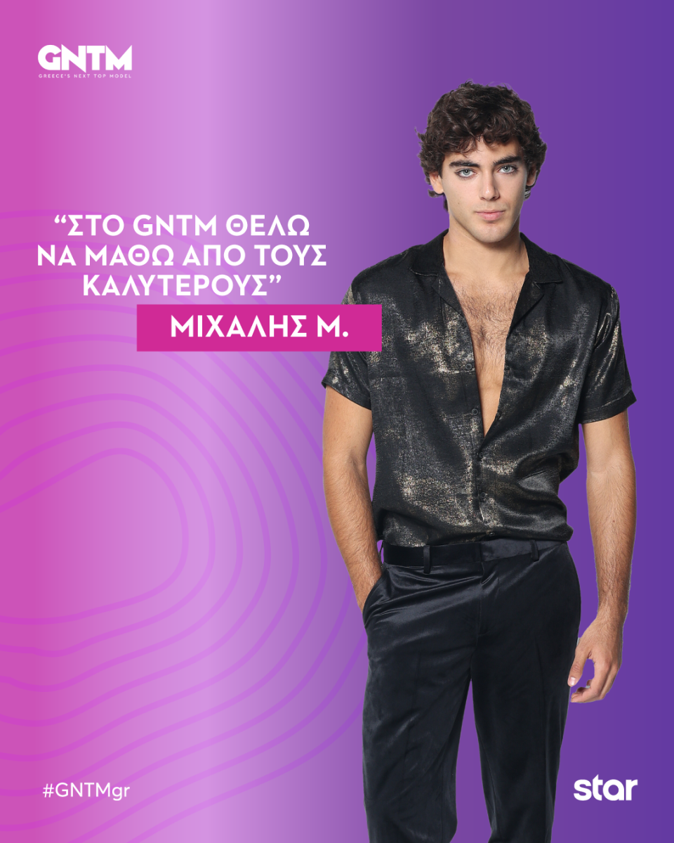 O Μιχάλης κατάγεται από την Κάρυστο και είναι 20 ετών. Ασχολείται πολλά χρόνια ερασιτεχνικά με το πόλο και σπουδάζει στο τμήμα Επικοινωνίας Μέσων και Πολιτισμού. Ασχολείται με τον χώρο του modelling τον τελευταίο χρόνο και έχει ενταχθεί στο δυναμικό ενός πρακτορείου στην Αθήνα, έχοντας καταφέρει να «κλείσει» αρκετές δουλειές. Είναι λακωνικός και μετρημένος και το GNTM 2025 θα είναι για αυτόν και μία προσωπική πρόκληση. Ελπίζει μέσω του διαγωνισμού να μάθει από τους καλύτερους, να εξελιχθεί σε όλα τα επίπεδα και να του δοθεί η ώθηση που χρειάζεται προς την κορυφή.