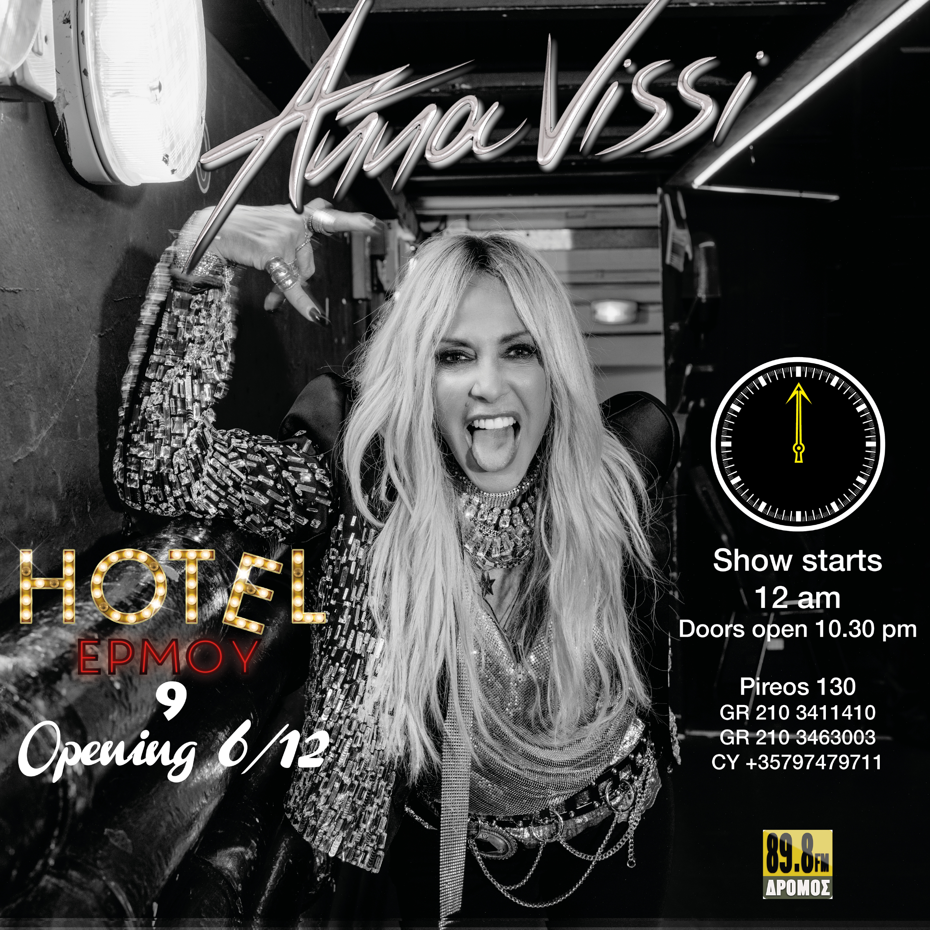 Το «Hotel Ερμού», το απόλυτο place-to-be που η Άννα Βίσση και η εξαιρετική της μπάντα δημιούργησαν και καθιέρωσαν, ανοίγει ξανά τις πόρτες του για να χαρίσει συγκλονιστικά και συναρπαστικά βράδια τα οποία γράφουν μουσική ιστορία.