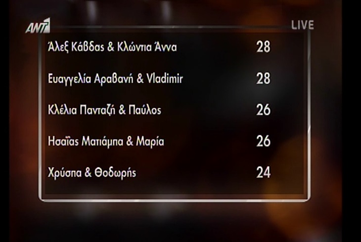 Η βαθμολογία μετά τις εμφανίσεις όλων των αστέρων, διαμορφώθηκε ως εξής: