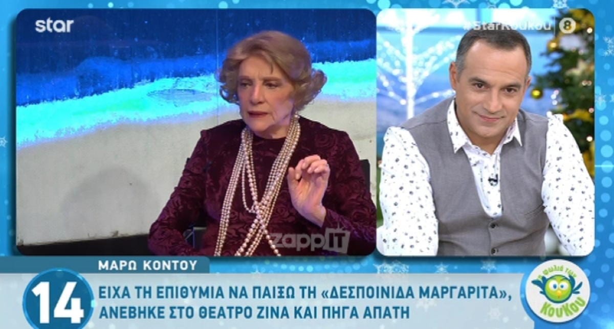 “Στα 60 χρόνια καριέρας έχω δεχτεί μόνο 2-3 τηλεοπτικές προτάσεις. Κι εγώ έχω απορία γιατί δεν με ζητούν για ένα σίριαλ”, λέει χαρακτηριστικά η Μάρω Κοντού.