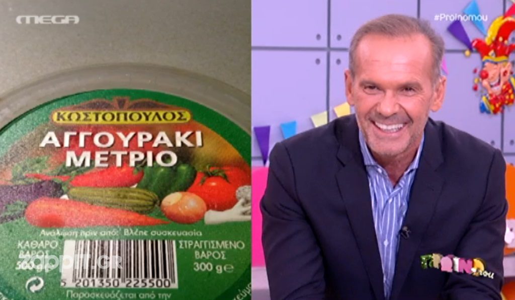 Μια πλάκα θέλησαν να κάνουν οι συνεργάτες του Πέτρου Κωστόπουλου και του εμφάνισαν μια κονσέρβα που έγραφε στην ετικέτα: Κωστόπουλος – Αγγουράκι μέτριο.