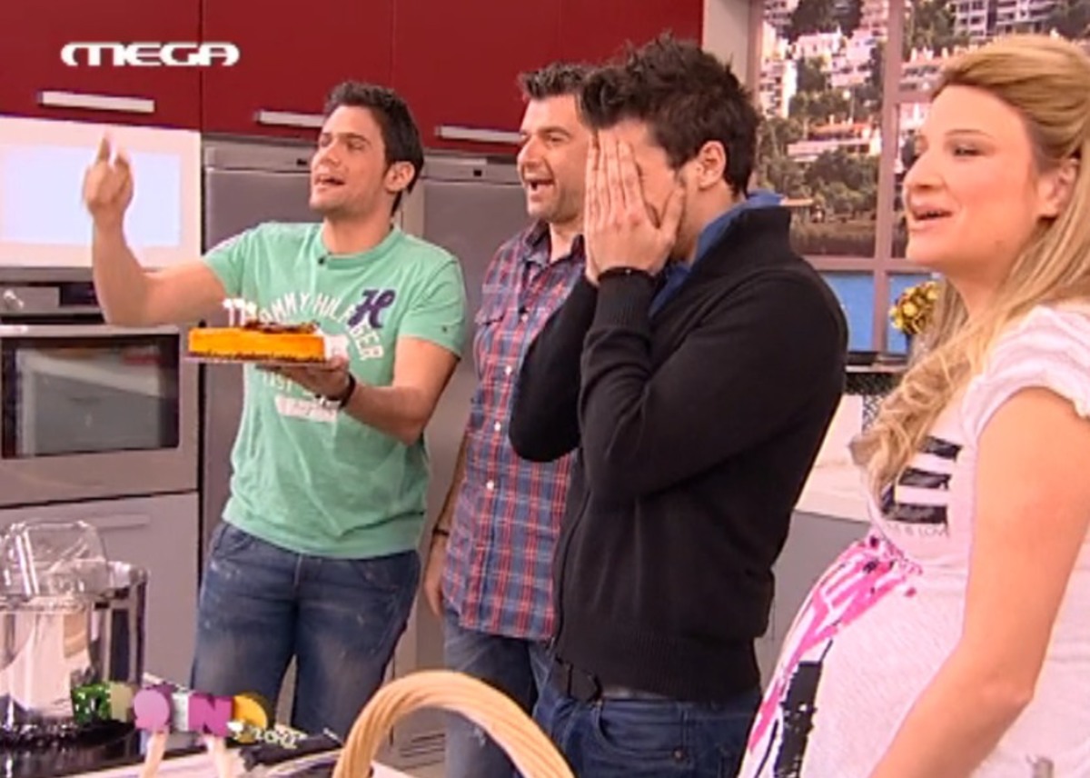 Ο Άκης Πετρετζίκης έχει γενέθλια και στο Πρωινό mou του έφεραν τούρτα συνοδευόμενη από το γνωστό τραγουδάκι γενεθλίων. Ο Άκης έκρυψε το πρόσωπο του όταν την είδε, γέλασε και βούρκωσαν ελαφρώς τα μάτια του. Μόλις έσβησε τα κεράκια το κλίμα άλλαξε αμέσως ο “πλακατζής” Ουγγαρέζος που του είπε ότι την τούρτα την επιμελήθηκε ο Δημήτρης Σκαρμούτσος.