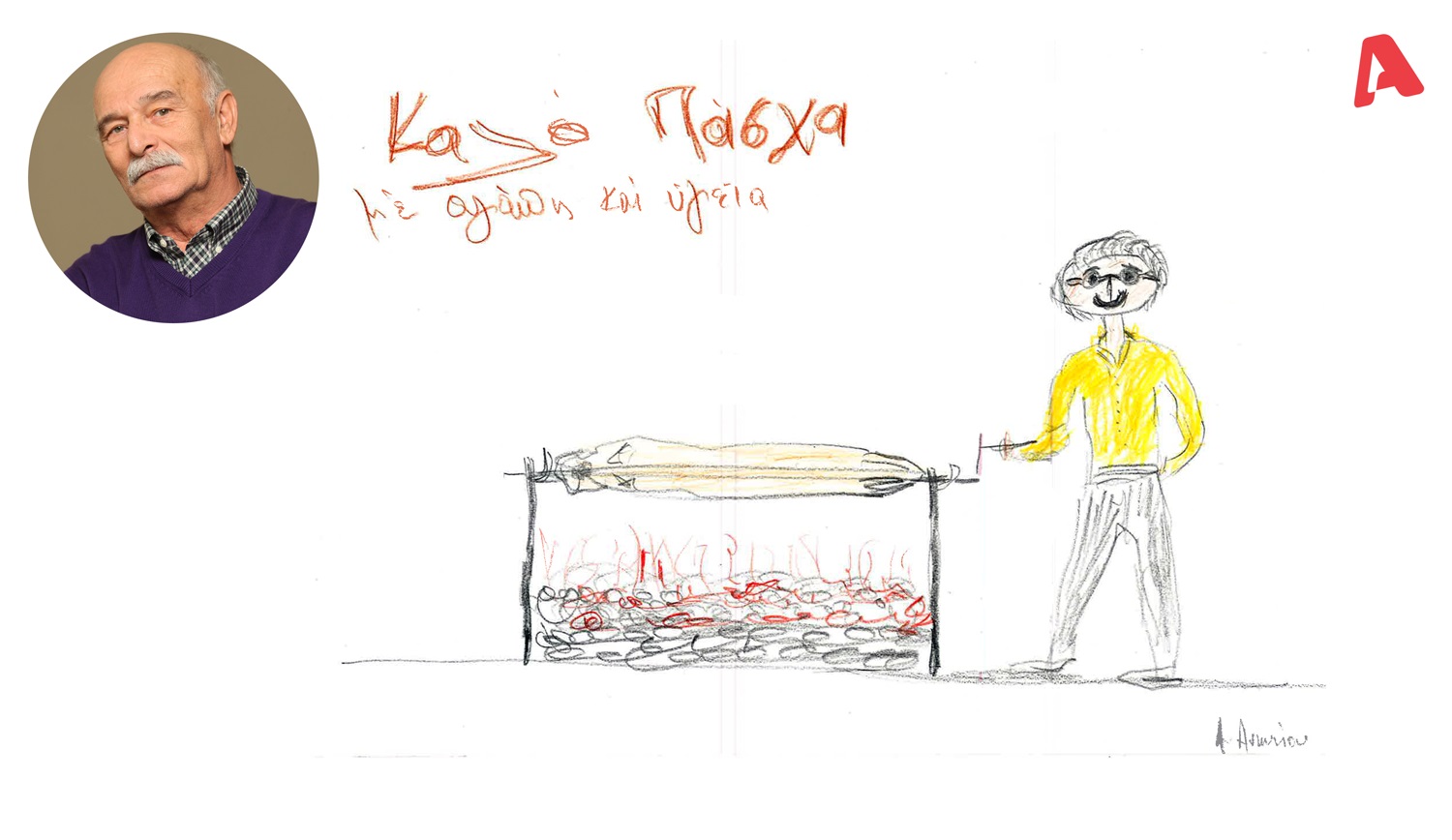 Ο Αντώνης Αντωνίου γυρίζει από τώρα τη σούβλα με το αρνί και δίνει ευχές για αγάπη και υγεία.
