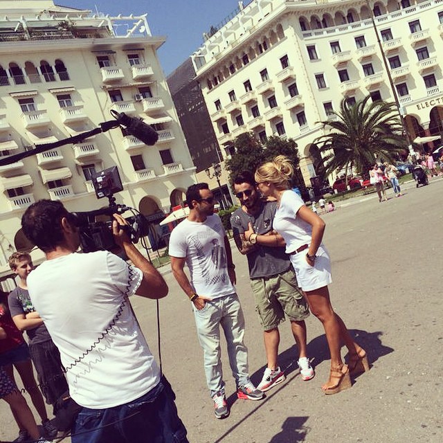 Σήμερα μάλιστα βρέθηκε με δυο άλλα πρόσωπα του Alpha, τον Σάκη Τανιμανίδη και τον Γιώργο Μαυρίδη, μαζί με τους οποίους έκαναν γύρισμα στην πλατεία Αριστοτέλους.