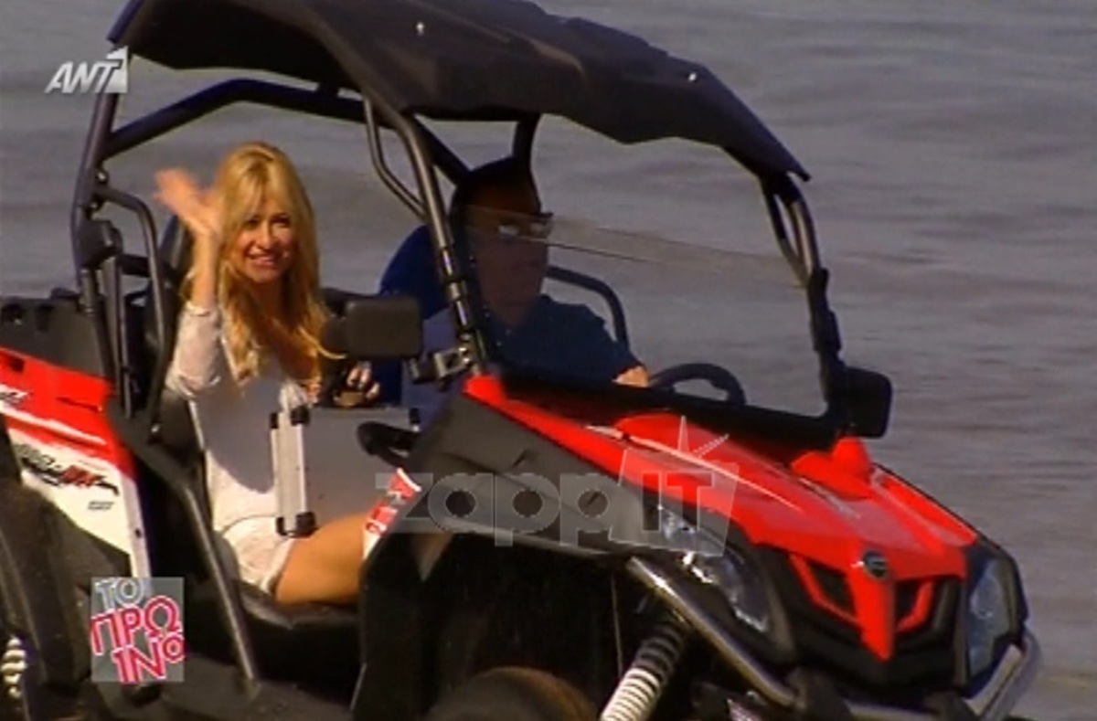 Ο ξενυχτισμένος από το “The Voice” Γιώργος Λιάγκας, αυτή τη φορά δεν βγήκε από τη θάλασσα με τζετ σκι, αλλά εμφανίστηκε με αυτοκινητάκι από τη στεριά έχοντας στο πλάι του την Φαίη Σκορδά.