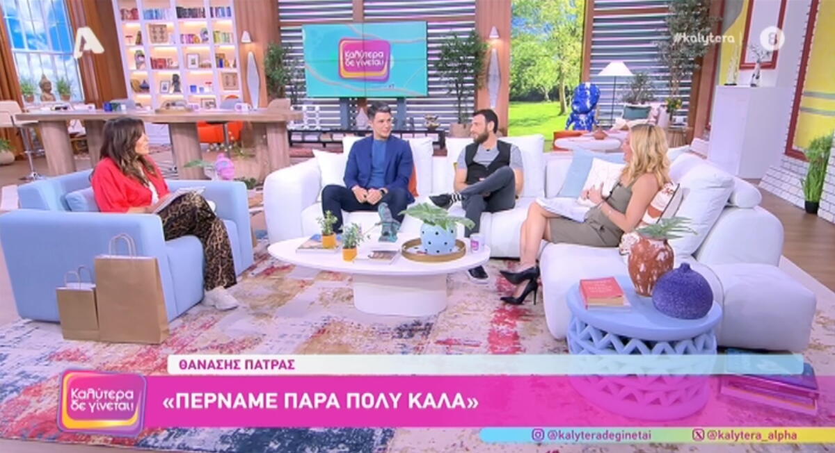 Στο πλατό του “Καλύτερα δε γίνεται” υποδέχθηκε η Ναταλία Γερμανού, το μεσημέρι της Κυριακής, τον Θανάση Πάτρα και τον Δημήτρη Πανόπουλο όπως είδαμε στον αέρα του Alpha. Η πολυαναμενόμενη συνάντηση της παρουσιάστριας με τον μέχρι πέρσι στενό της συνεργάτη, ωστόσο, κάθε άλλο παρά ενθουσίασε τους χρήστες του X.