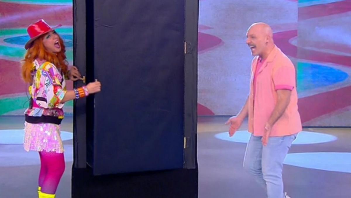 Πιο συγκεκριμένα, από ένα τεράστιο κουτί βγήκε ο Δημοσθένης Τζουμάνης για να ακολουθήσει από άλλη πλευρά η γοητευτική παρτενέρ του στο J2US, Γιώτα Γρίβα!