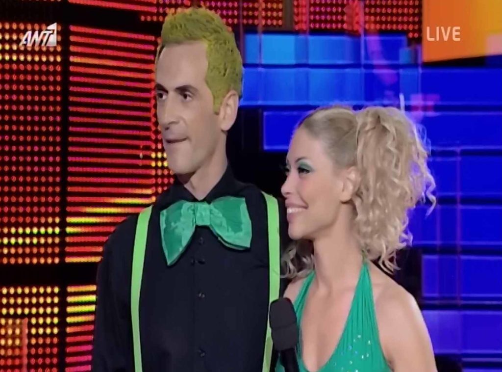 Πρώτος ανέβηκε στην τηλεοπτική πίστα, ο ηθοποιός Κώστας Κρομμύδας, με… βαμμένα πράσινα μαλλιά.