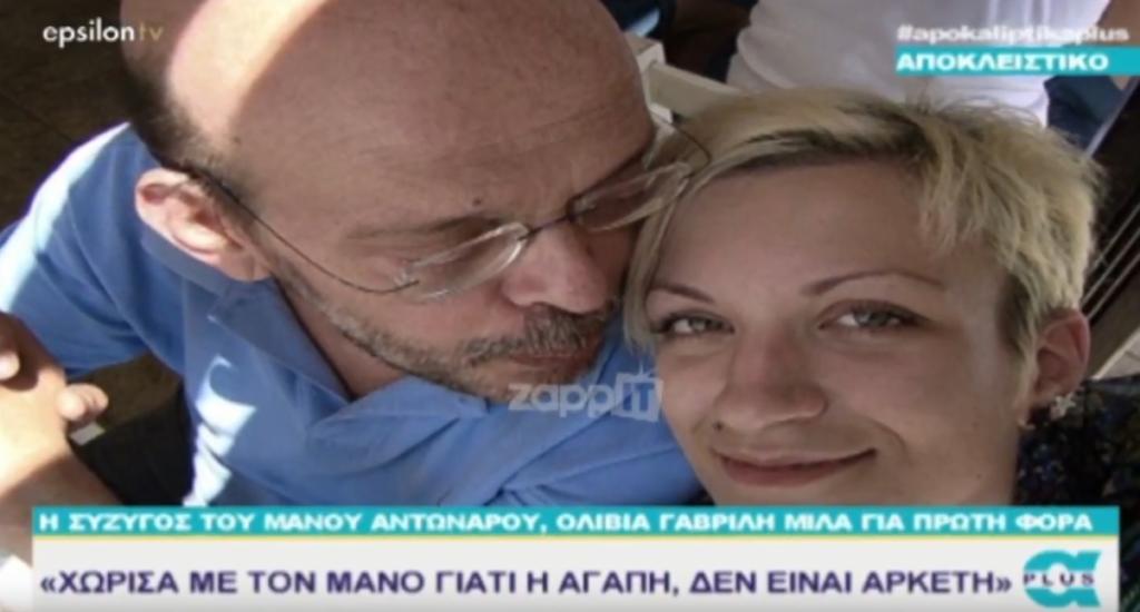 Σχεδόν δύο μήνες μετά το θάνατο του δημοσιογράφου Μάνου Αντώναρου, η σύζυγος του Ολίβια Γαβρίλη και μητέρα των δύο ανήλικων παιδιών του, μιλά για πρώτη φορά για όλα όσα συνεβησαν ανάμεσα τους. Για το χωρισμό τους, την κόντρα που είχε ξεσπάσει μεταξύ τους, αλλά και το συγκινητικό αποχαιρετιστήριο κείμενο που έγραψε για εκείνον όταν έφυγε από τη ζωή ο Μάνος.