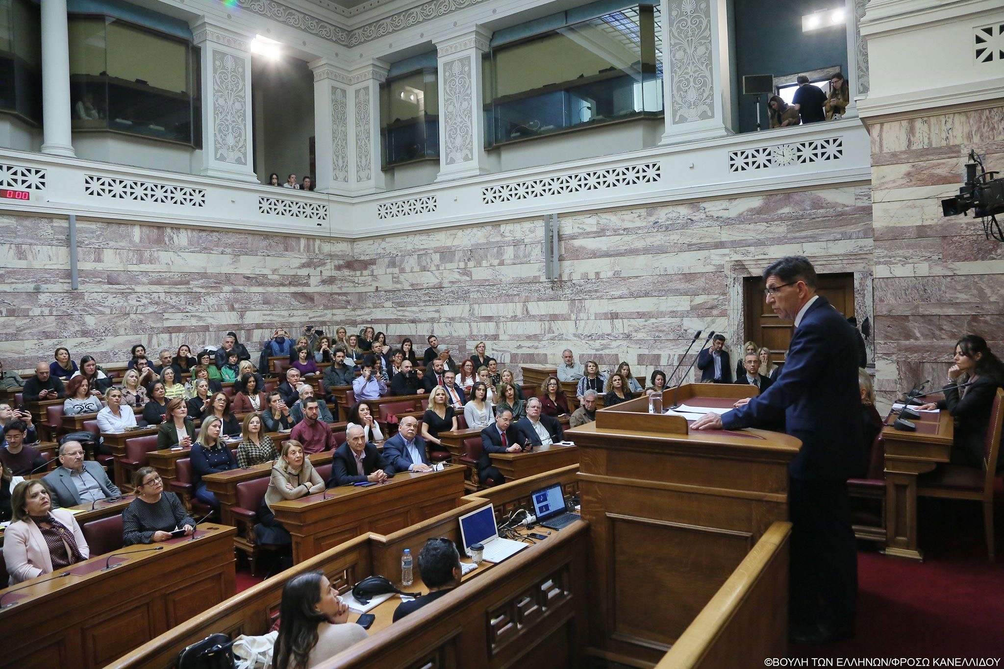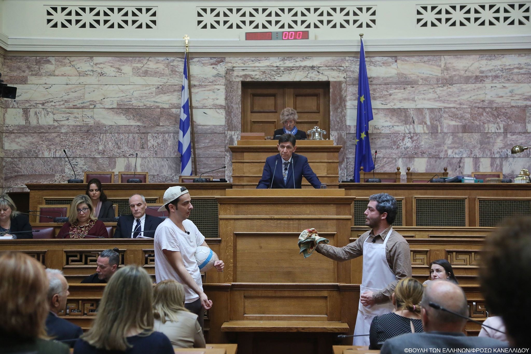 Στις 27 Μαρτίου 2018, την Παγκόσμια Ημέρα Θεάτρου, η παράσταση «Εκτός Ύλης ή Ο μονόλογος ενός καθ’ ομολογία παράλογου» του βραβευμένου συγγραφέα Κώστα Λεϊμονή σε σκηνοθεσία Κωνσταντίνας Νικολαΐδη, είχε παρουσιαστεί στη Βουλή των Ελλήνων σε συνεργασία με τις δύο ερασιτεχνικές θεατρικές ομάδες της Βουλής υπό την καθοδήγηση του Μπάμπη Αρώνη. Την παράσταση είχαν παρακολουθήσει βουλευτές διαφόρων κομμάτων, συμπεριλαμβανομένου του Προέδρου της Βουλής, καθώς και εργαζόμενοι της Βουλής.