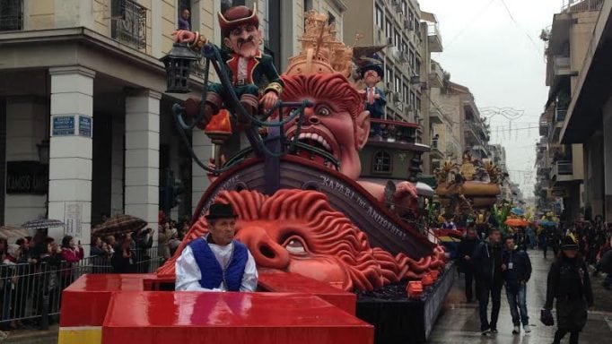 Σε εξέλιξη βρίσκεται η μεγάλη καρναβαλική παρέλαση το κέντρο της Πάτρας. Η βροχή που πέφτει στην πόλη, δεν στάθηκε ικανή να πτοήσει τους χιλιάδες καρναβαλιστές, που παρελαύνουν μαζί με τις κατασκευές τους, μέσα σε κλίμα χαράς και ενθουσιασμού. Επίσης, η βροχή δεν πτόησε ούτε τους χιλιάδες επισκέπτες, που προφυλαγμένοι κάτω από τις στοές των πεζοδρομίων της οδού Κορίνθου, παρακολουθούν την παρέλαση και συμμετέχουν ενεργά στην μεγάλη γιορτή της Πάτρας.