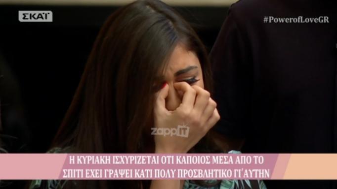Η Μαρία Μπακοδήμου ρώτησε τι ήταν αυτό που την στενοχώρησε και η Κυριακή Τσανικίδη ανέφερε: “Είδα κάποια μηνύματα τα οποία αφορούσαν εμένα και τα οποία με στεναχώρησαν πάρα πολύ. Μηνύματα που είχε στείλει συμπαίκτης σε πρώην συμπαίκτρια. Έλεγαν ψέματα για μένα, ήταν πολύ προσβλητικό, πάρα πολύ προσβλητικό”! Κι ενώ η Κυριακή προσπαθούσε να σκουπίσει τα δάκρυά της, ήρθε η “έκρηξη” με τη Βίβιαν Τσιμίλα.