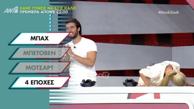 Χαμός επικράτησε στο σημερινό επεισόδιο του Ρουκ Ζουκ! Η ομάδα “Χωριάτες” έφτασε στον τελικό και το θέμα ήταν η κλασική μουσική. «Μπετόβεν, Μπαχ, Μότσαρτ, 4 εποχές» ήταν οι τέσσερις λέξεις που επέλεξε ο αρχηγός και έπρεπε να τις βρουν οι συμπαίκτες του.