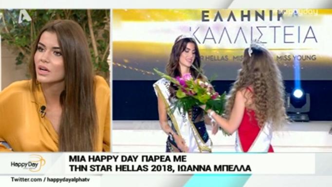 Η Ιωάννα Μπέλλα στέφθηκε Σταρ Ελλάς 2018 και τα παρατράγουδα ξεκίνησαν με τη λήξη του διαγωνισμού. Μεταξύ όσων ακούστηκαν ήταν και ότι τα Καλλιστεία 2018 ήταν στημένα. Η ίδια βρέθηκε στο Happy Day το πρωί της Τετάρτης και απάντησε σε όλα.
