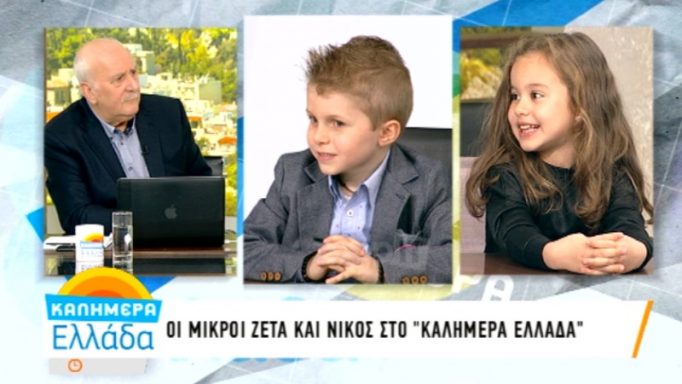Οι δύο μικροί μας παρουσιαστές, «η μικρή Ζέτα» και «ο μικρός Νίκος» βάζουν στο στόχαστρο, αυτή τη φορά, τον Γιώργο Παπαδάκη. Σε μία απολαυστική συνέντευξη, οι μικροί θα στριμώξουν για τα καλά τον αγαπημένο παρουσιαστή της μακροβιότερης, πρωινής, ενημερωτικής εκπομπής, «Καλημέρα Ελλάδα».