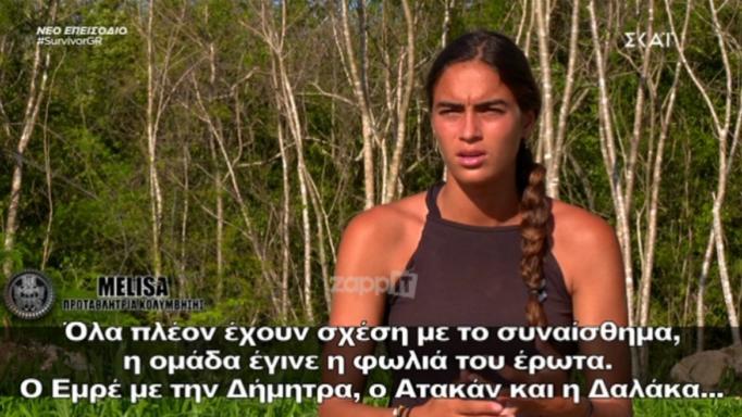 Η μαύρη ομάδα του Survivor δεν έχει ξεκινήσει καλά, με την Melisa Emirbayer να είναι πολύ απαισιόδοξη για τη συνέχεια. Στάθηκε, μάλιστα, περισσότερο στην Κατερίνα Δαλάκα και τον Atakan Isiktutan, τονίζοντας πως η ομάδα χάνει και αυτοί χορεύουν και χαριεντίζονται.