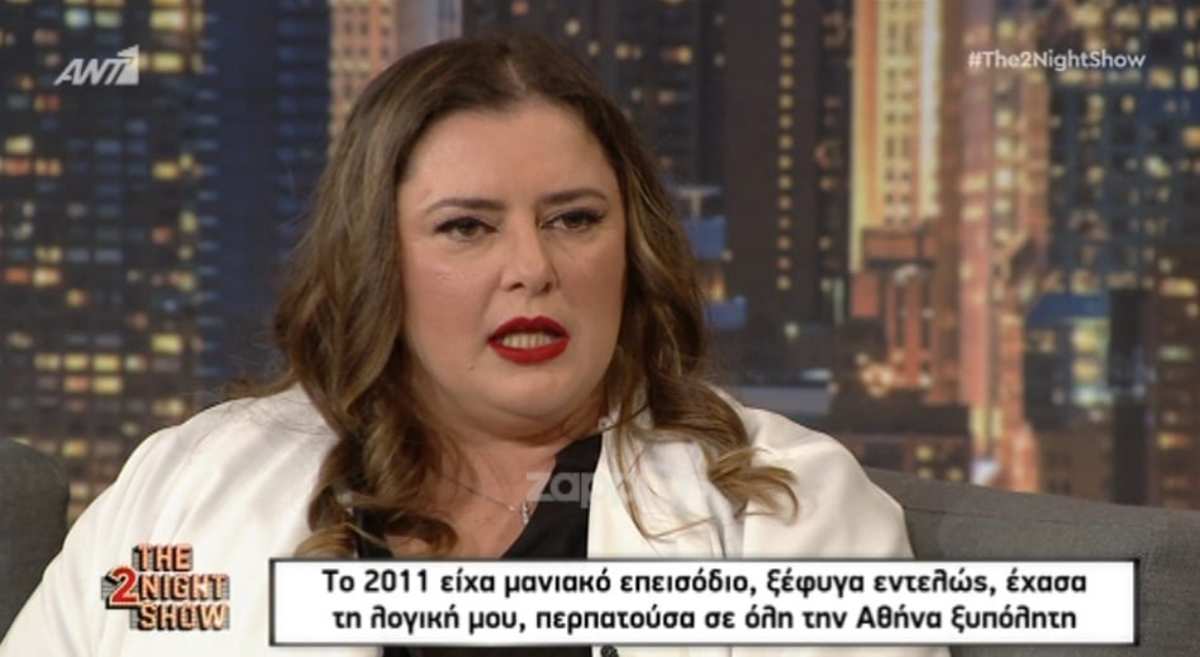 «Το 2011 είχα μανιακό επεισόδιο. Ξέφυγα εντελώς! Έχασα τη λογική μου. Είχα μια υπερδιέγερση. Δεν μπορούσα να κοιμηθώ. Δεν μπορούσα να μείνω σταθερά σε ένα σημείο, ήθελα να περπατάω συνέχεια. Περπατούσα σε όλη την Αθήνα ξυπόλητη. Ήταν λες και όλα λειτουργούσαν στο maximum που θα μπορούσα να λειτουργήσουν. Γενικότερα ήμουν σε υπομανίες στο παρελθόν. Μετά που κατάλαβα τι γίνεται και αναλογίστηκα το παρελθόν μου, ήμουν άνθρωπος που ήμουν λίγο πριν τη μανία. Ας πούμε δεν κουραζόμουν. Μπορεί να ήμουν στο στούντιο μία εβδομάδα μόνο με καφέ και τυρόπιτα, χωρίς να κοιμάμαι. Αυτά είναι δείγματα υπομανίας. Δεν είναι φυσιολογικό ένας άνθρωπος να μην κοιμάται 4-5 μέρες.