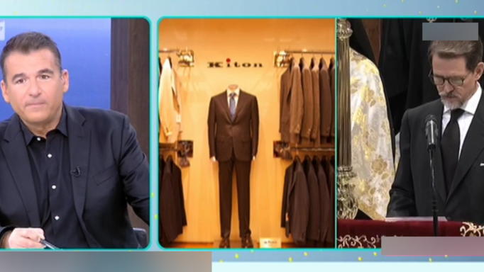 “Την ώρα που τον έραβε ήταν προσοχή ο Παύλος και για να σπάσει ο πάγος του είπε ότι ακόμα και οι βασιλείς κάθονται όρθιοι στους ράφτες τους. Ήταν πολύ φιλικός και πλήρωσε κανονικά. Είναι μάρκας Kiton το ύφασμα του κοστουμιού, από τα πιο ακριβά και καλύτερα στον κόσμο”, πρόσθεσε ο Γιώργος Λιάγκας.