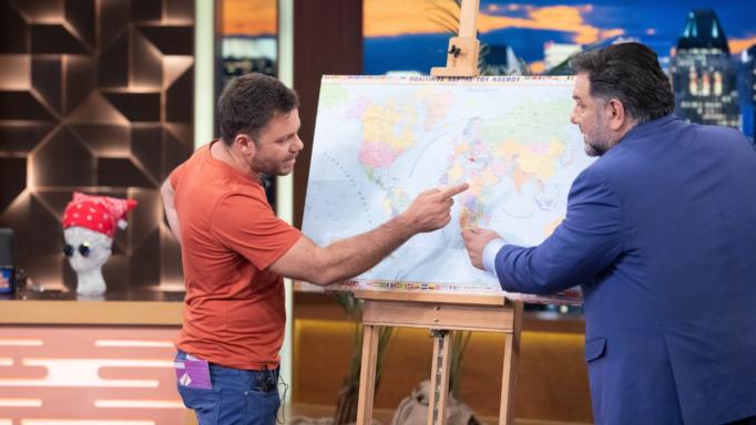 Σε ποια χώρα θα μπορούσε να ζήσει; Πού έχασε το διαβατήριό του; Ποια μέρη του χάρτη δεν έχει επισκεφτεί ακόμα; Τέλος, ο Ευτυχής με την κιθάρα του τραγουδάει το «παστίτσιο της μαμάς» και θυμάται την πρώτη του τηλεοπτική εμφάνιση στο πλευρό του Γρηγόρη.