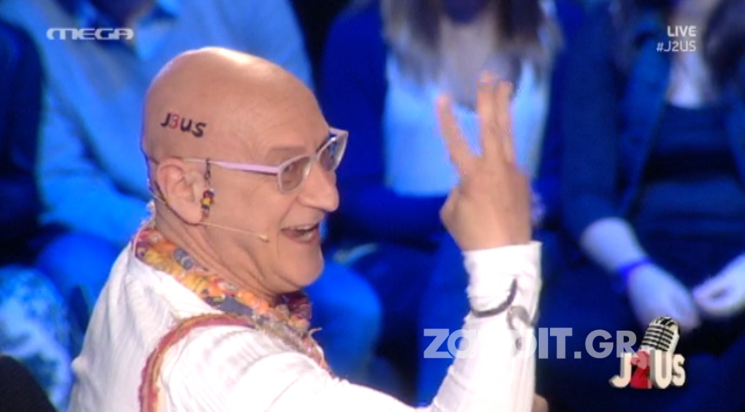 Ενώ λίγο αργότερα είδαμε και την καθιερωμένη πια μικροαλλαγή στην κριτική επιτροπή, αυτή του προσωρινού τατουάζ στο κεφάλι του Δημήτρη Αρβανίτη που σήμερα έγραφε J3US και ήταν αφιερωμένο στους τρεις κριτές…