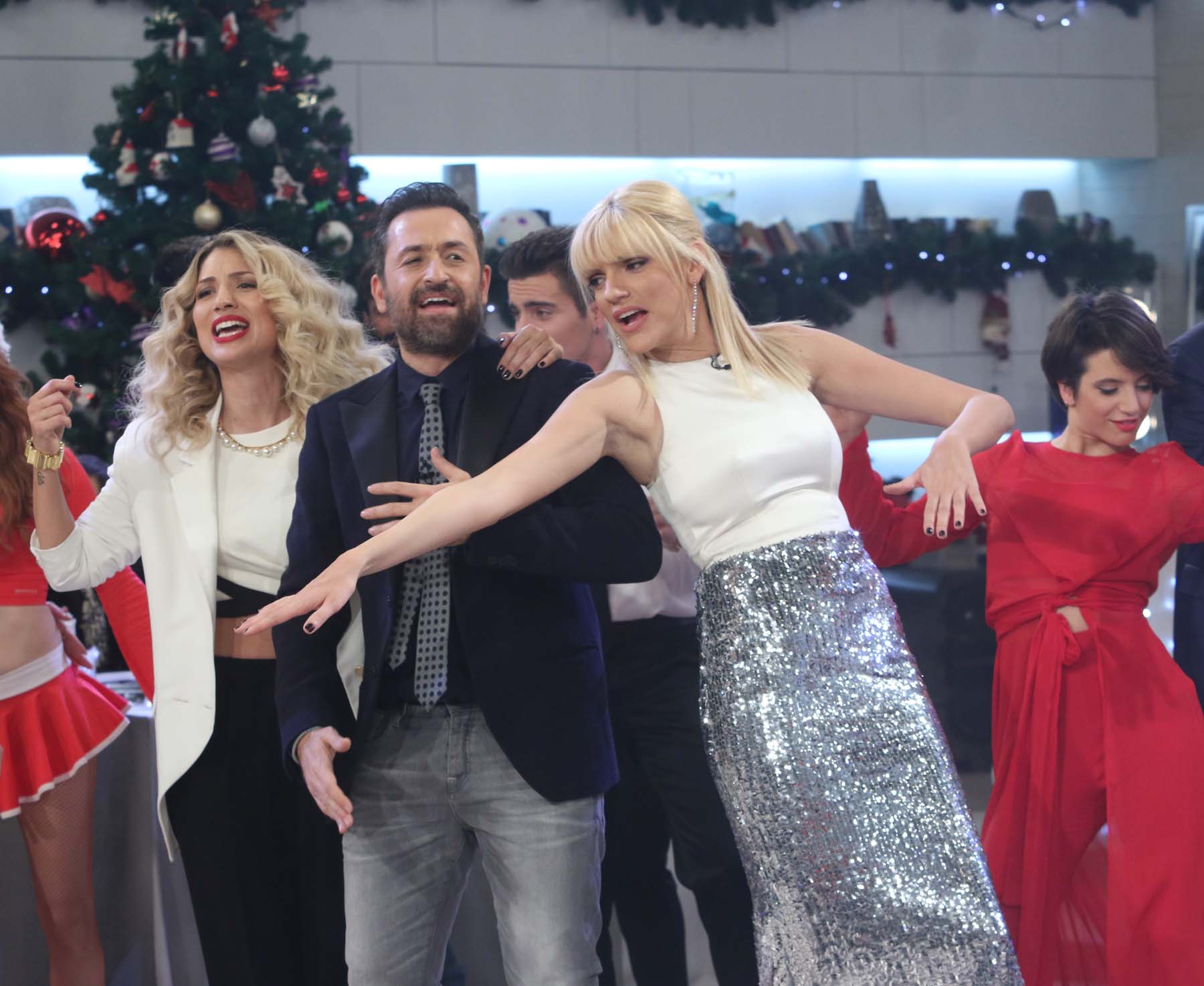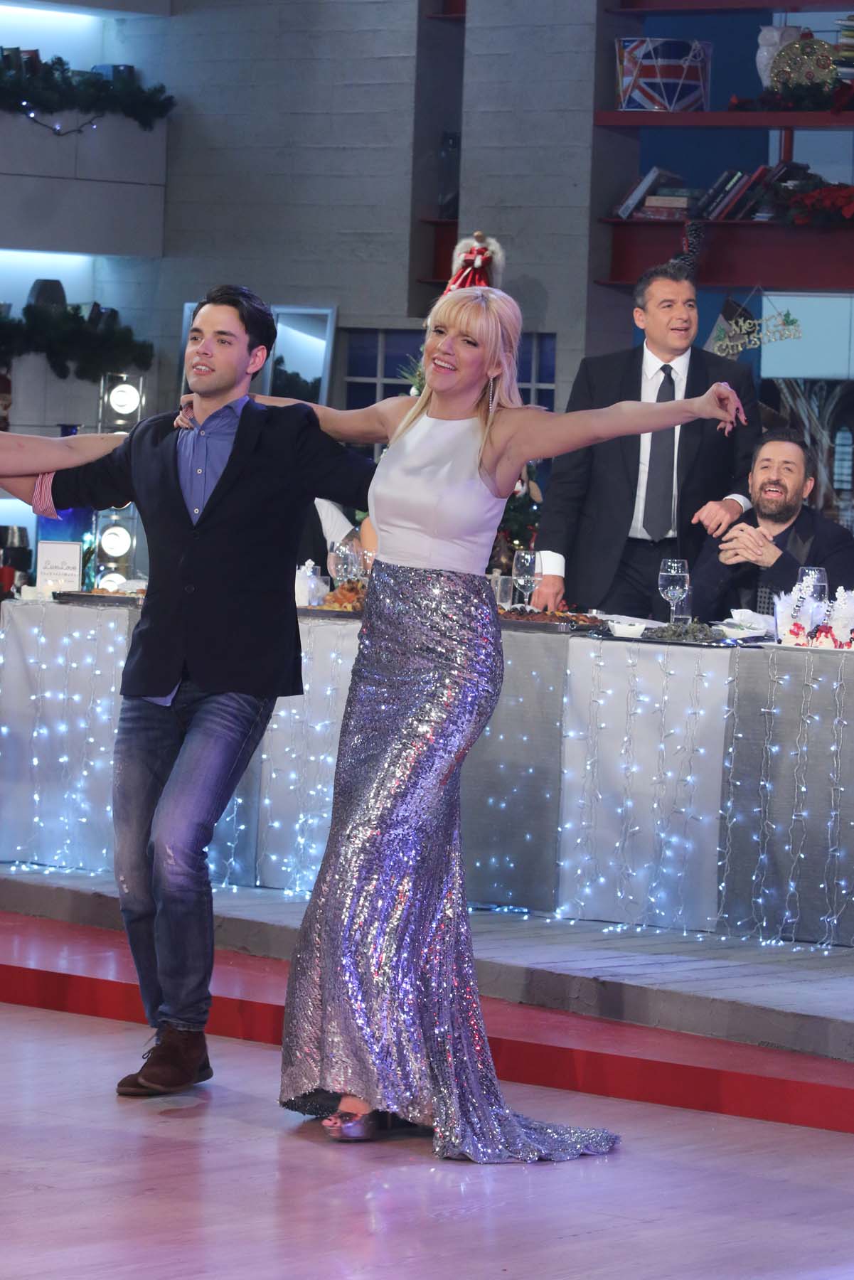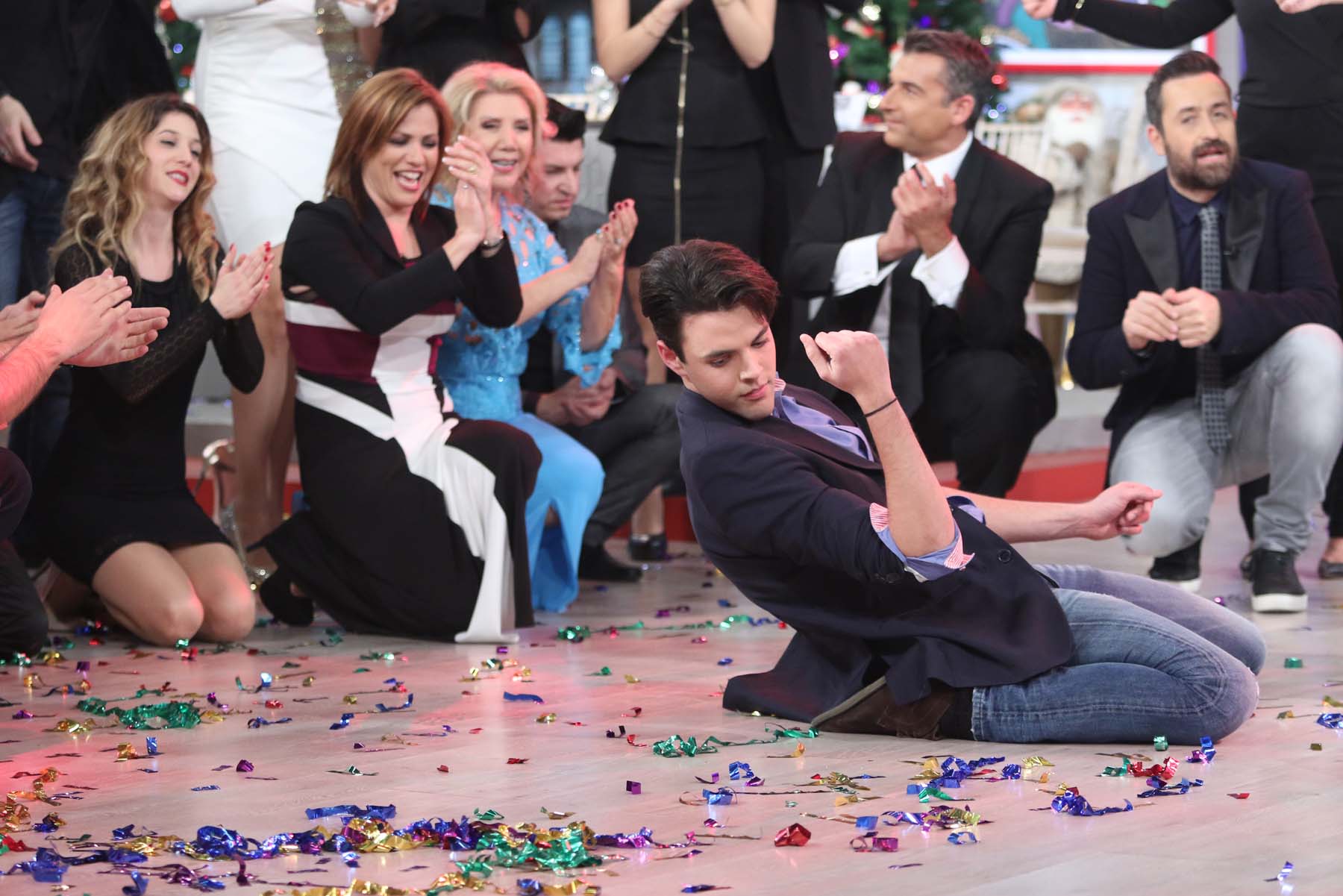 Ο Διονύσης Σχοινάς δίνει το έναυσμα της βραδιάς και παρασέρνει τους προσκεκλημένους – τους αγαπημένους πρωταγωνιστές των σειρών του ΑΝΤ1, «ΜΠΡΟΥΣΚΟ», «ΟΙ ΣΥΜΜΑΘΗΤΕΣ» και «ΤΑΜΑΜ» – σε ένα διαφορετικό Πρωτοχρονιάτικο πάρτι, κλέβοντας τις εντυπώσεις με το δυναμικό performance του.