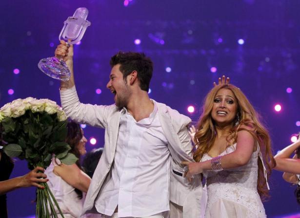 Ρουμανία, Αυστρία, και το επόμενο μεγάλο φαβορί – που κατάφερε τελικά να σηκώσει το τρόπαιο χωρίς να διαψεύσει τα προγνωστικά που το ήθελαν στις πρώτες θέσεις-, το Αζερμπαϊτζάν με τους Ell&Nikki και το “Running Scared”