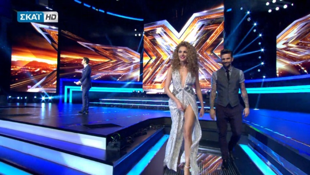 Η γνωστή τραγουδίστρια και κριτής του show, εμφανίστηκε με ένα μακρύ φόρεμα που άφηνε ακάλυπτο το ένα της πόδι.