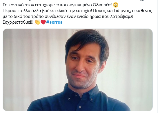 Αν και όχι ιδιαίτερα πολυμήχανος, ο Οδυσσέας (Γιώργος Ζυγούρης) τελικά βρήκε την Ιθάκη του στην αγάπη. Τα 581 χιλιόμετρα από την Αθήνα έως τις Σέρρες αρκούσαν για να δώσουν στη δική του οδύσσεια αυτό που της άξιζε.