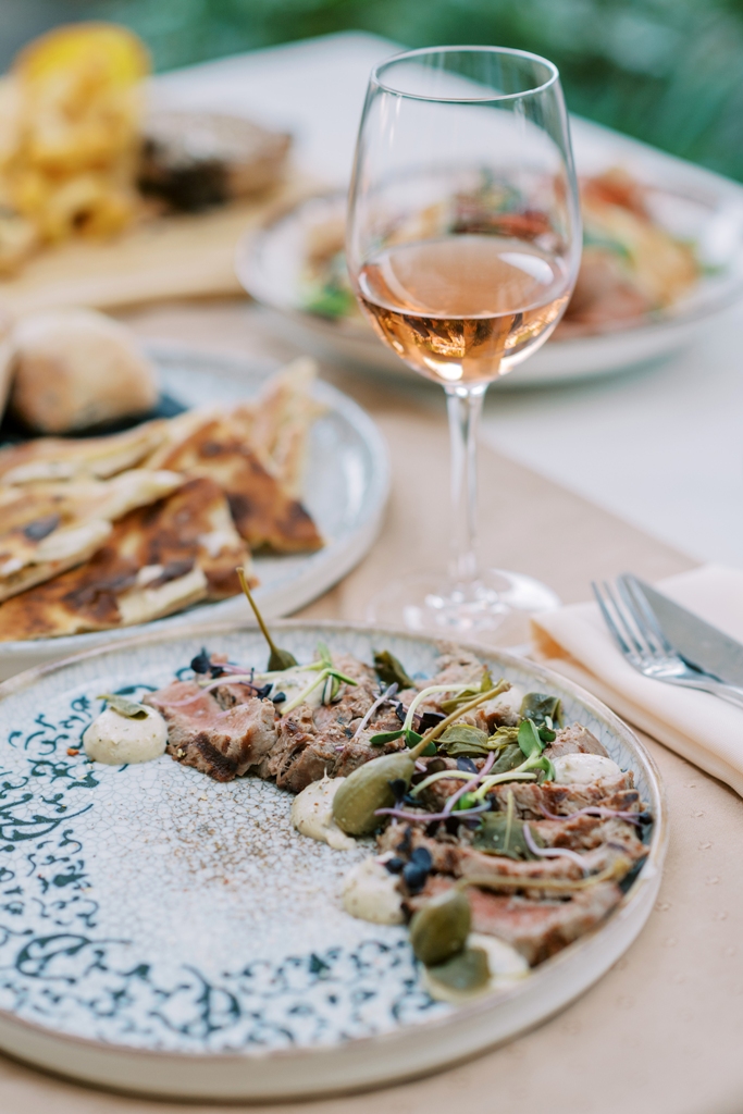 Στα κρέατα, υπέροχο πιάτο είναι το Vitello tonnato, αλλά και το μοσχαρίσιο φιλέτο Black agnus και οι tomahawk μπριζόλες, όλα τοπικών παραγωγών. Σε ψάρι χρησιμοποιούμε σολωμό, τσιπούρες και λαβράκια, όλα φρέσκα» μας λέει ο πολλά υποσχόμενος σεφ, αποδεικνύοντας με τις επιλογές του την «εμμονή» τους να αναδεικνύουν την ποιοτική πρώτη ύλη.