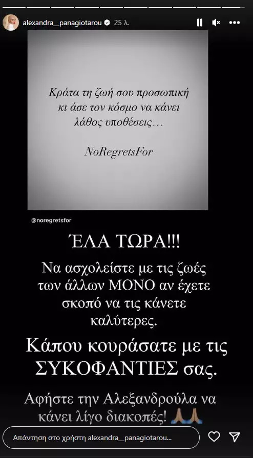 Η ανάρτηση που έκανε η Αλεξάνδρα Παναγιώταρου.