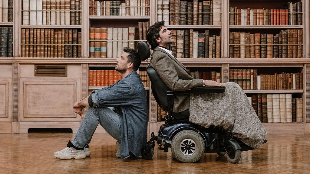Είναι ωραία πρόκληση, Αλέξανδρε και τα φανταστικά του στοιχεία θα σου πω πως με κινητοποίησαν. Το έργο, όπως είδες, δεν μιλάει για την αναπηρία. Δεν πας άλλωστε να προσεγγίσεις την αναπηρία μέσα από έναν άνθρωπο, ο οποίος έχει λύσει την πρόσβαση του σε οποιοδήποτε χώρο κι αν θελήσει να βρεθεί καθώς είναι πάμπλουτος. Σίγουρα στον Φιλίπ με γοήτευσαν η εσωτερικότητα του, η σχέση με τις λέξεις και τον λόγο, η σχέση με την μουσική και την Τέχνη, η απομόνωση του. Μπορεί αν το θελήσει τη μια στιγμή να είναι όπου σκεφτεί και την επόμενη να είναι ολομόναχος. Αυτή η ανεξαρτησία και τα στοιχεία ενός «υπερήρωα» που φέρει την μια στιγμή, την επόμενη χάνονται και δεν μπορεί να αυτοεξυπηρετηθεί. Το βασικό θέμα στην ιστορία είναι αυτό που συνειδητοποίησαν και όλοι οι Γάλλοι με την προβολή του σχετικού ντοκιμαντέρ. Δηλαδή η παράδοξη, διαφορετική φιλία μεταξύ ενός αριστοκράτη Γάλλου και ενός Αλγερινού μετανάστη.