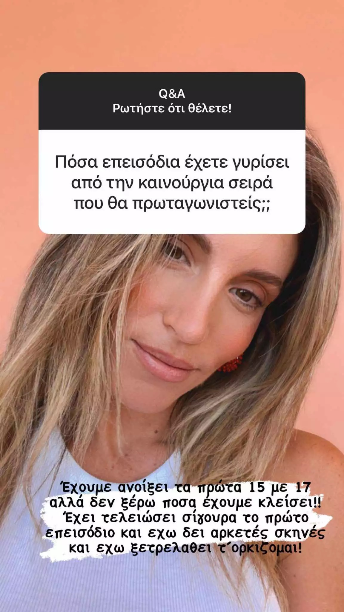 «Έχουμε ανοίξει τα πρώτα 15 με 17 αλλά δεν ξέρω πόσα έχουμε κλείσει! Έχει τελειώσει σίγουρα το πρώτο επεισόδιο και έχω δει αρκετές σκηνές και έχω ξετρελαθεί, το ορκίζομαι».