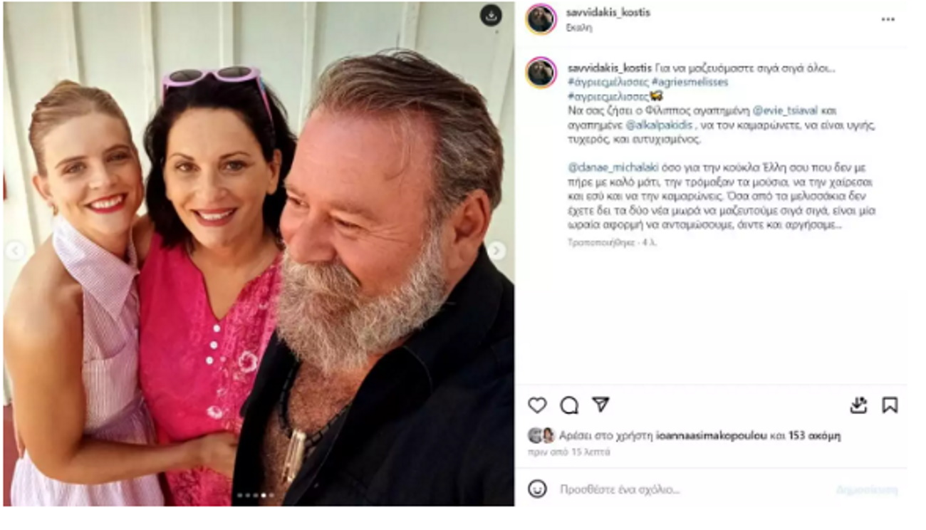 «Δανάη Μιχαλάκη όσο για την κούκλα Έλλη σου που δεν με πήρε με καλό μάτι, την τρόμαξαν τα μούσια, να την χαίρεσαι και εσύ και να την καμαρώνεις…» έγραψε ο ηθοποιός, αποκαλύπτοντας ότι το όνομα που θα πάρει η κόρη των ηθοποιών είναι Έλλη.