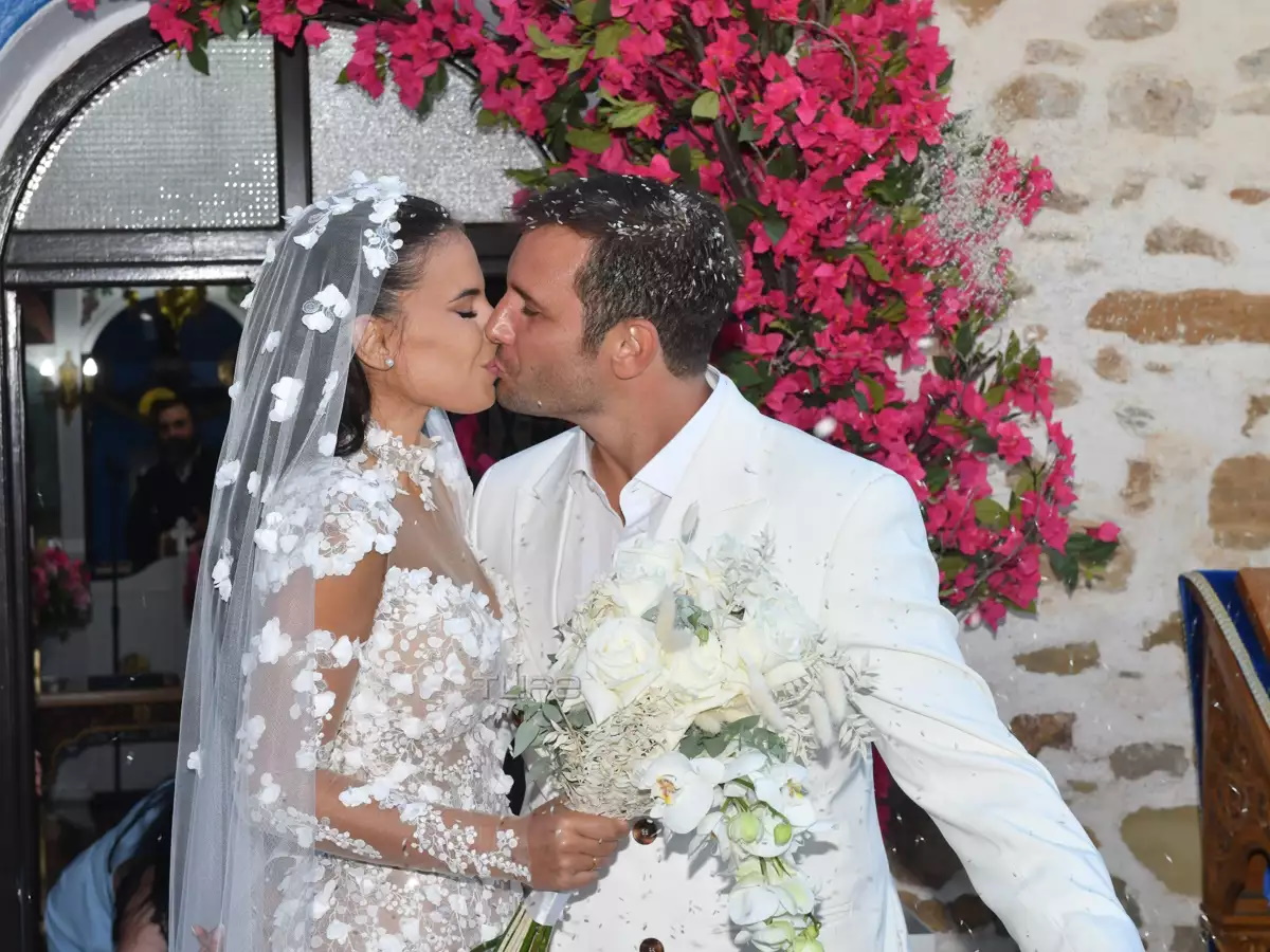 Το ερωτευμένο ζευγάρι έλαμπε από ευτυχία, δίπλα σε αγαπημένους συγγενείς και φίλους. Ο γνωστός ηθοποιός επέλεξε να ντυθεί στα λευκά γαμπρός, ενώ η νύφη εντυπωσίασε με το ιδιαίτερο νυφικό και το μακρύ πέπλο, φτάνοντας στην εκκλησία με παραδοσιακή μουσική, συνοδευόμενη από την οικογένειά της.