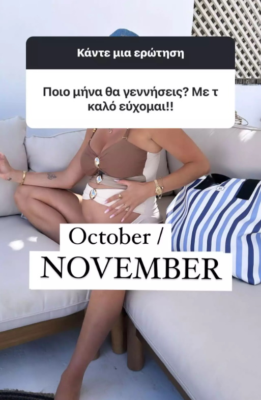 Σε άλλη ερώτηση διαδικτυακού της φίλου, η Ευρυδίκη Παπαδοπούλου αποκάλυψε ότι αναμένεται να γεννήσει τον Οκτώβριο ή τον Νοέμβριο.