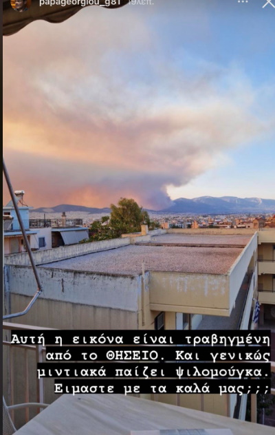 Ανήσυχος είναι ο Γιώργος Παπαγεωργίου με τις φωτιές που καίνε τις τελευταίες ημέρες στη χώρα μας. Ο γνωστός ηθοποιός δημοσίευσε μία εικόνα από το Θησείο και στο βάθος φαίνεται η πύρινη λαίλαπα που σαρώνει τα πάντα.