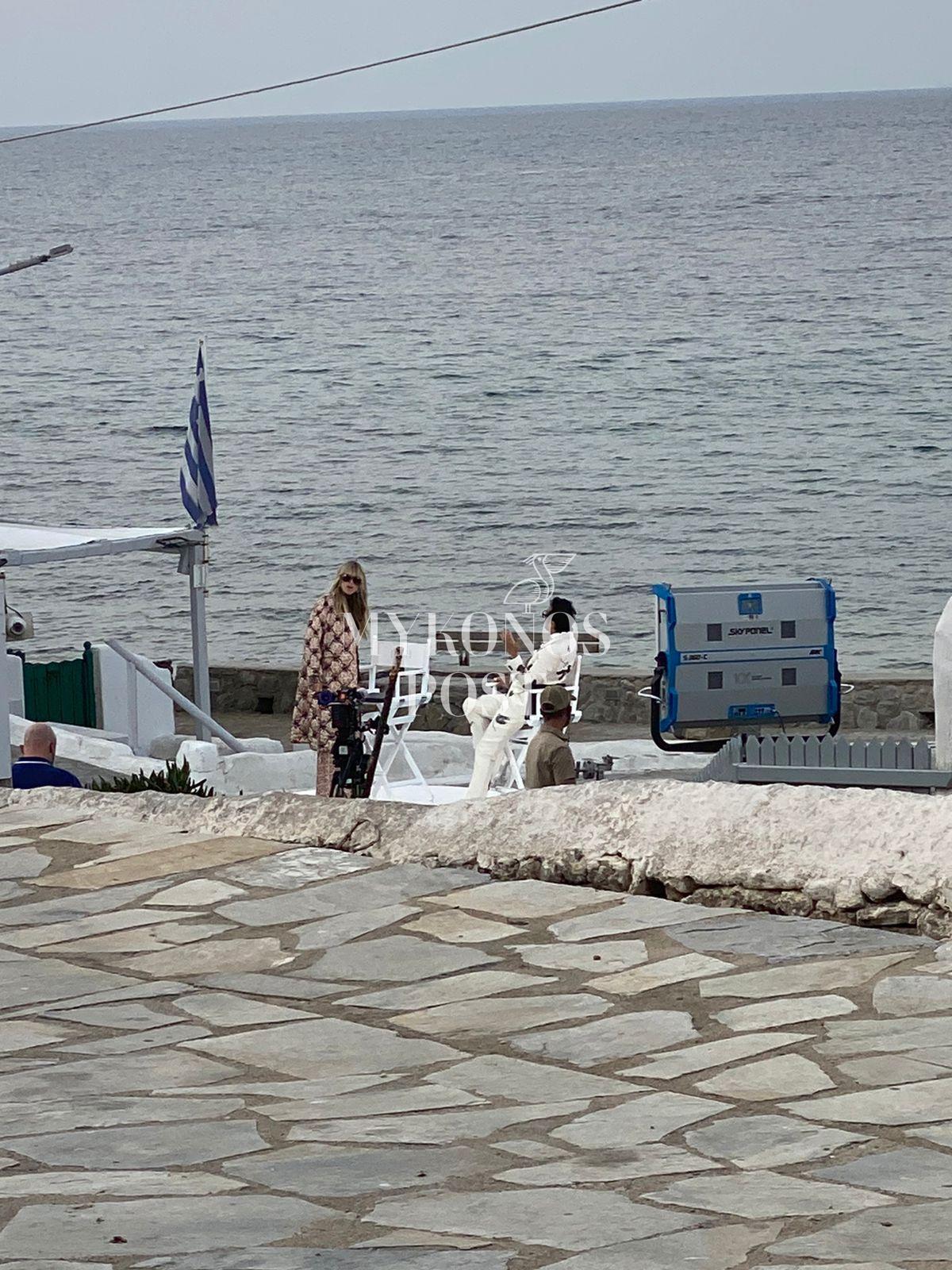 Όπως γράφει το Mykonos Post, το σετ έλαβε χώρα στην περιοχή της Αλευκάντρας, κοντά στους Μύλους. Την Τρίτη 9/11, το όρντινο για τα γυρίσματα, ήταν το μεσημέρι. Στις φωτογραφίες διακρίνεται η Heidi Klum να συνομιλεί με συνεργάτες της, σε ένα από τα διαλείμματα των γυρισμάτων.