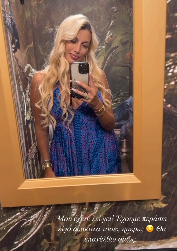 «Μου έχετε λείψει! Έχουμε περάσει δύσκολα τόσες ημέρες. Θα επανέλθω όμως», έγραψε η Κωνσταντίνα Σπυροπούλου.