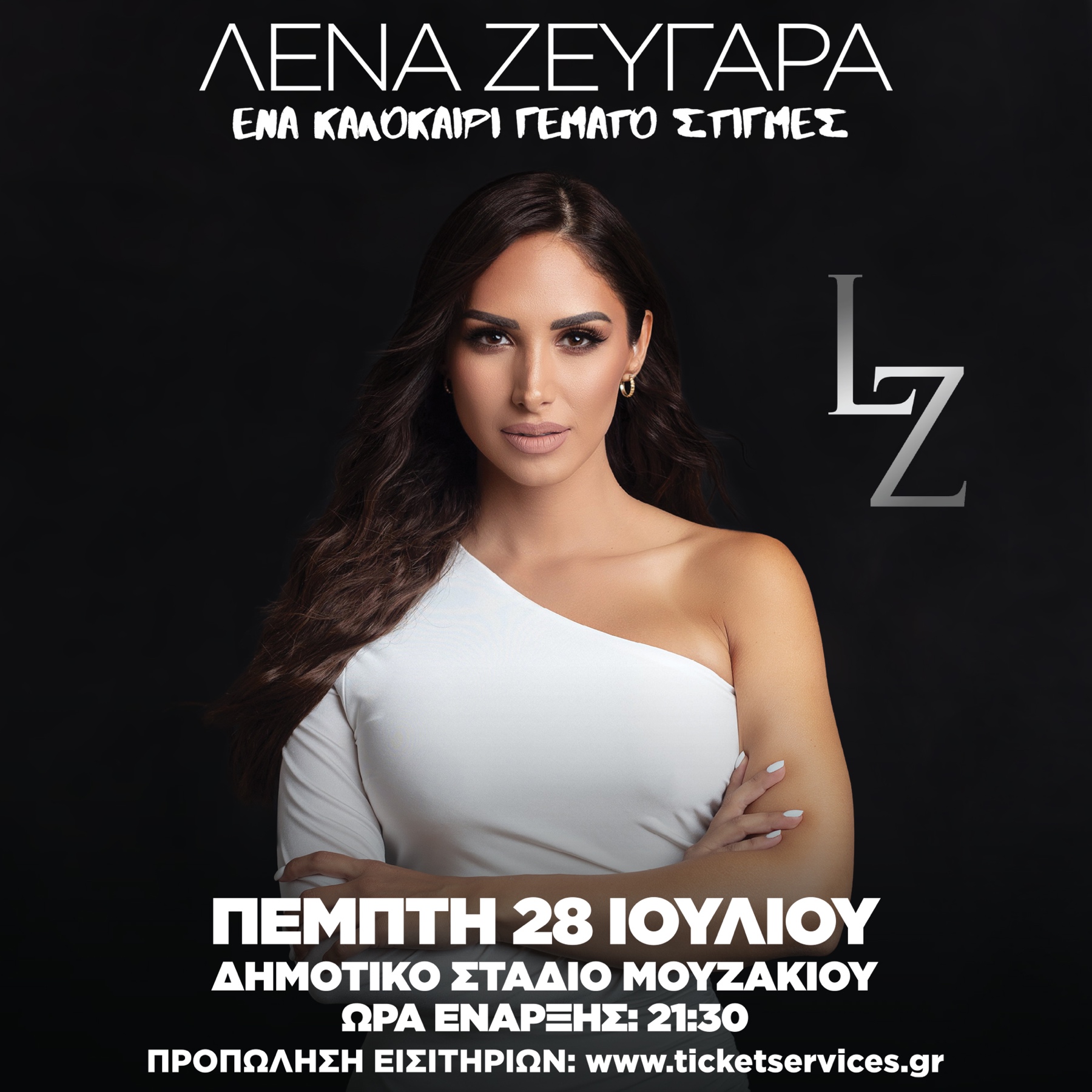 Η Λένα Ζευγαρά υπόσχεται και αυτό το καλοκαίρι, να μας χαρίσει, όμορφες και μοναδικές στιγμές. Το μουσικό της «ταξίδι», με τίτλο «Ένα καλοκαίρι γεμάτο στιγμές», ξεκινάει από την Καρδίτσα, όπου την Πέμπτη 28 Ιουλίου, η δημοφιλής ερμηνεύτρια, θα δώσει μία μοναδική συναυλία, στο Δημοτικό Στάδιο Μουζακίου!