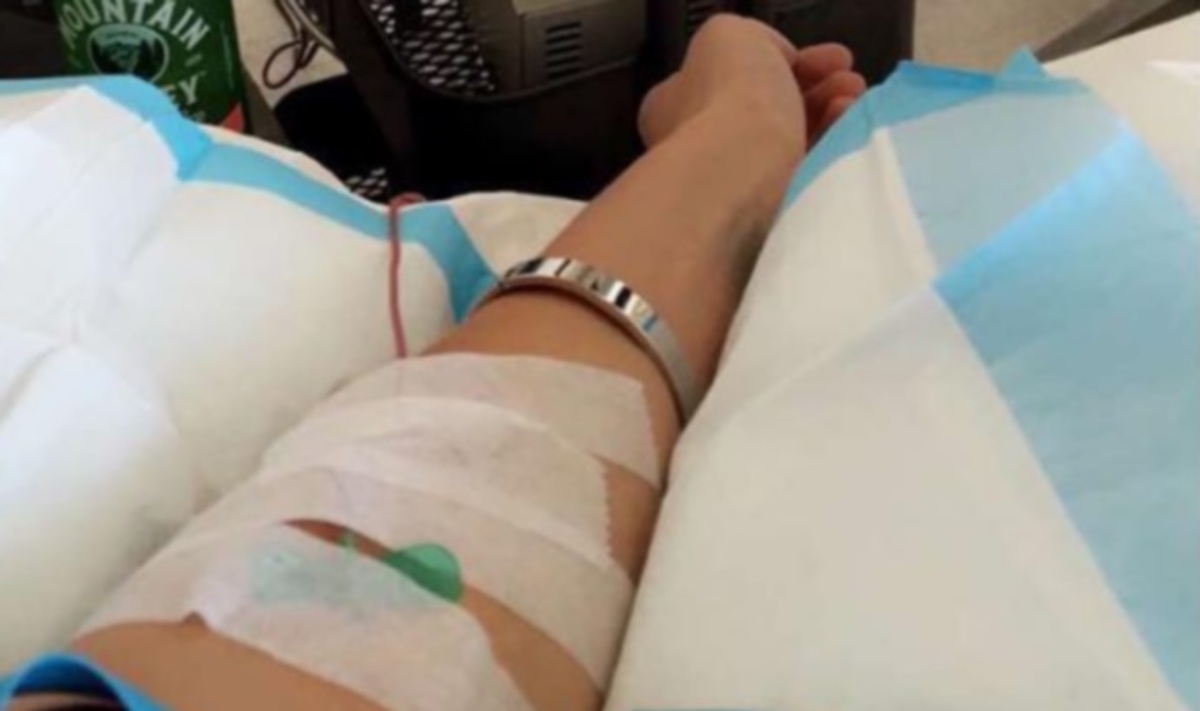 Η 19χρονη καλλονή δημοσίευσε μια φωτογραφία στο Snapchat με ορό στο χέρι της, ενώ εκείνη βρισκόταν ξαπλωμένη στο κρεβάτι, πιθανότατα του σπιτιού της γράφοντας «Κάθε μέρα».