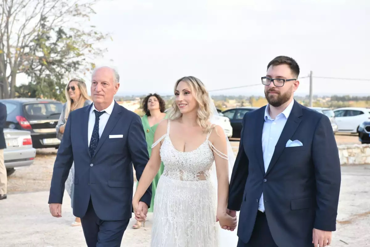 Ο Απόστολος Ρουβάς κατέφτασε στην εκκλησία κρατώντας στην αγκαλιά του τον γιο τους, με τη Φανή Γιαβρίδου να φτάνει – ως είθισται – λίγη ώρα αργότερα, συνοδευόμενη από τον πατέρα αλλά και τον αδελφό της.